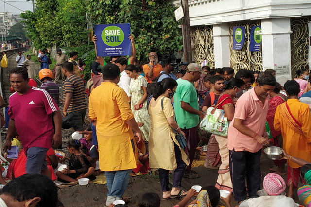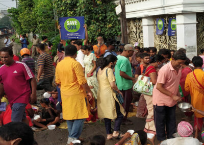 people offer respect to their forefathers and parents who passed away called MAHALAYA. This also took place on the bank of our River Ganges (officially River Hoogly). Vaibhavi Saambhavi took this opportunity to spread awareness among the common worshipers to